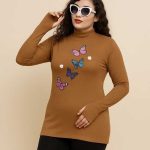 بلوز فینگر چاپ پروانه ای یقه اسکی (پک 6 عددی)