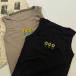 تاپ ۲ بندی گلدوزی ۳ گل افتابگردان (پک 5 عددی)