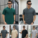 تیشرت مردانه یقه کوبایی (پک 6 عددی)
