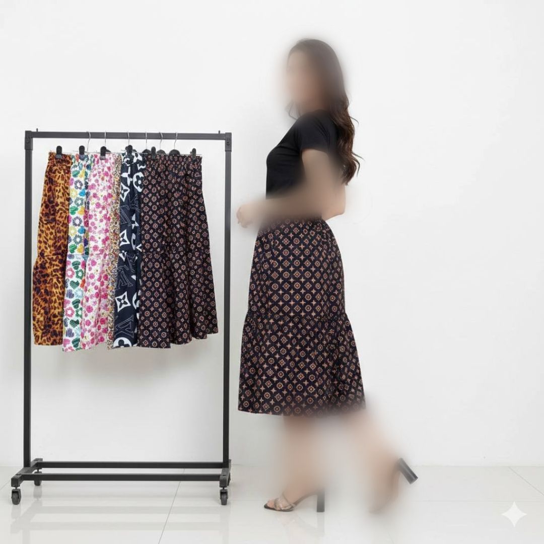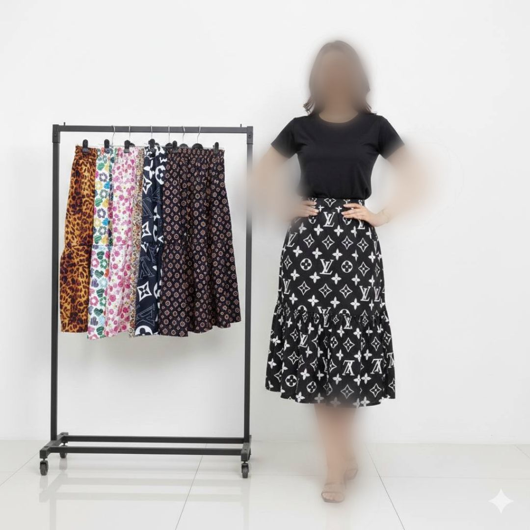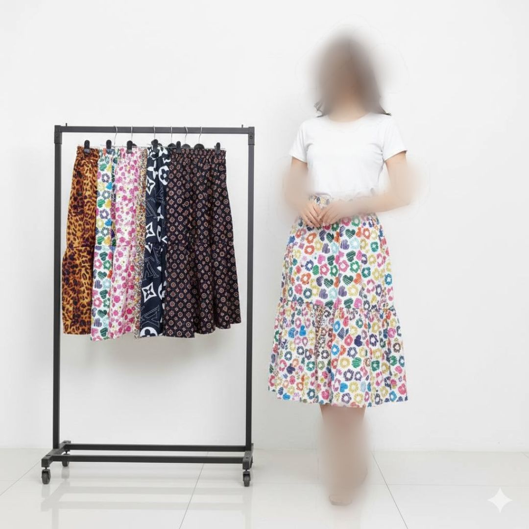 دامن کلوش چین دار قد ۹۰ (پک 6 عددی)