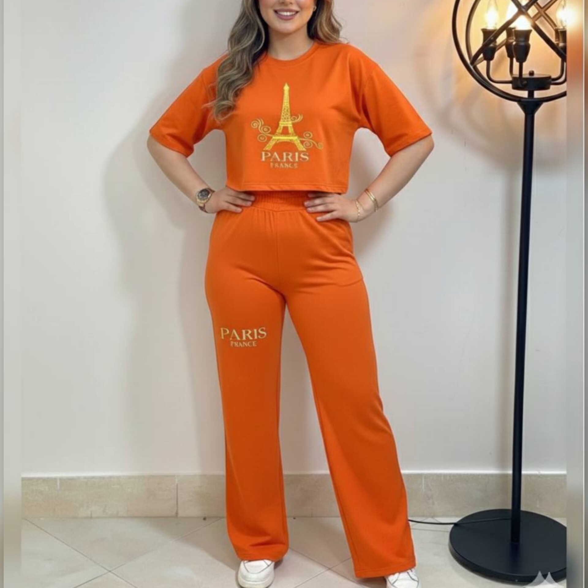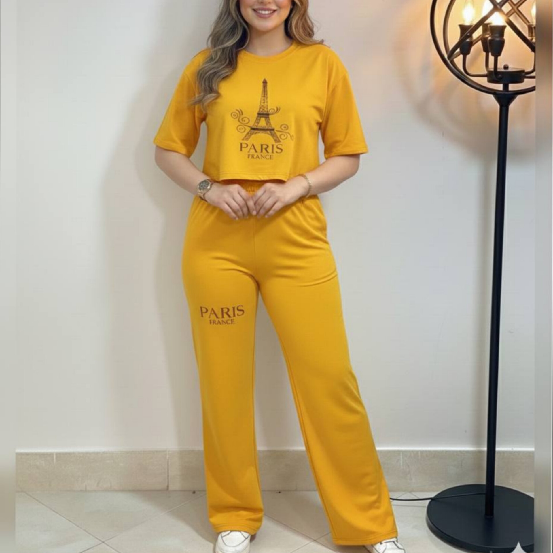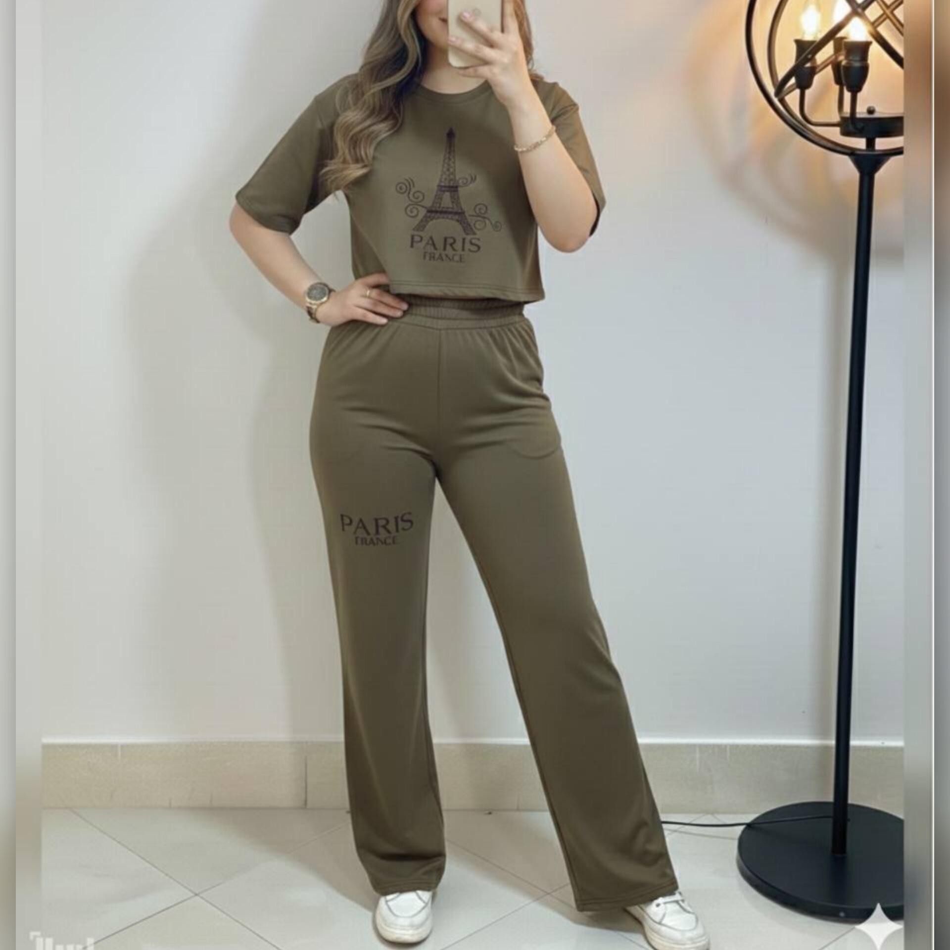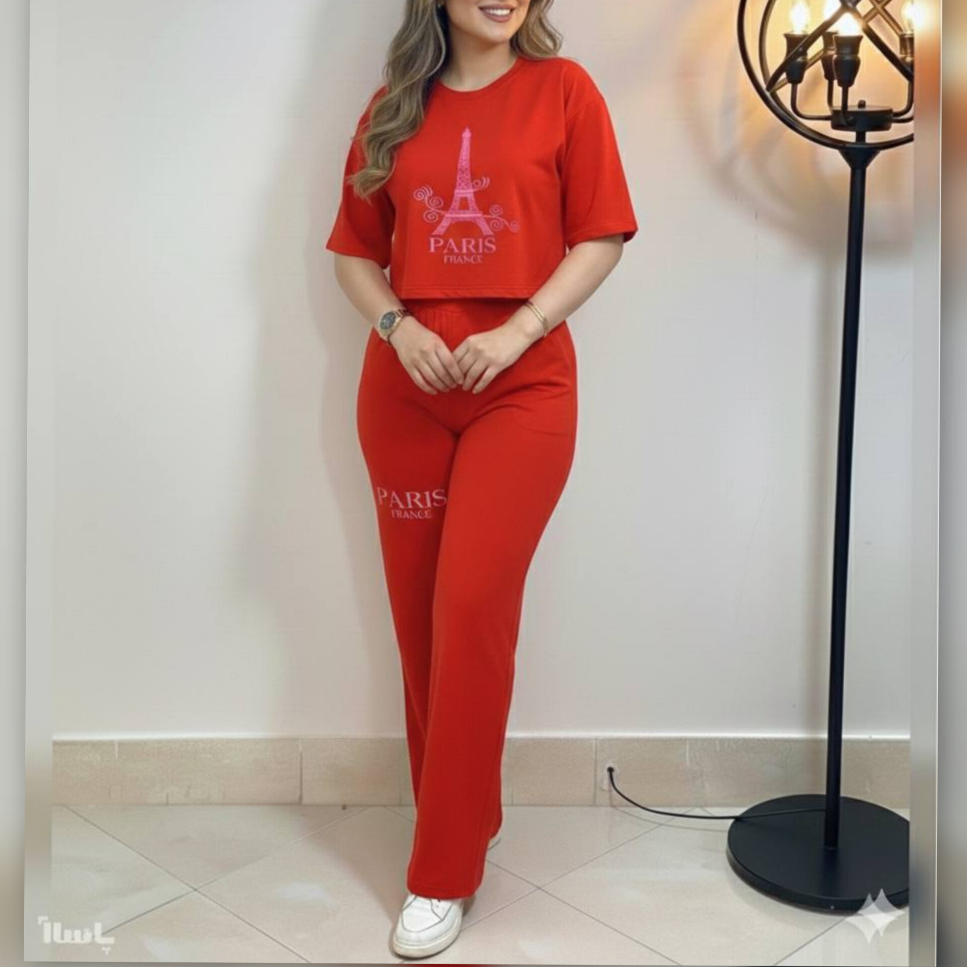 ️ست کراپ و شلوار چاپ ایفل (پک 6 عددی)